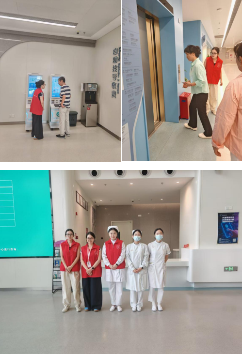 活动当天,身着“红马甲”的团员志愿者们早早来到门诊部,迅速分工协作,确保老年患者能够享受到便捷、贴心的服务。在挂号窗口,团员们耐心地协助老年患者,解答他们关于挂号流程的疑问,帮助他们顺利完成了挂号手续。在就诊过程中,团员志愿者们全程陪同,引导老年患者前往相应科室,确保就诊过程顺畅无阻。缴费环节,团员志愿者们更是细心地为老年患者讲解费用明细,协助他们完成缴费,避免了因操作不熟悉而产生的困扰。
